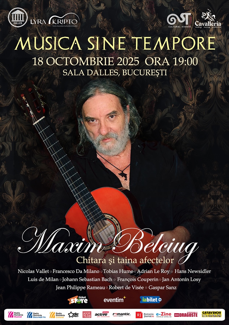Seria de concerte debutează pe 18 octombrie 2025, cu recitalul extraordinar susținut de Maxim Belciug, unul dintre cei mai importanți chitariști români, care aduce la Sala Dalles un regal cu pagini semnate de Francesco da Milano, François Couperin, Jan Antonín Losy, Luis de Milan, Johann Sebastian Bach, Jean Philippe Rameau, Robert de Visée și Gaspar Sanz, într-o interpretare efervescentă și surprinzătoare. Căci Maxim Belciug abordează repertoriul baroc cu o familiaritate pe care doar un om al barocului și-ar permite-o: la el, muzica respiră liber și direct, în ritmul natural al sincerității totale, iar barocul ne apare mereu tânăr și deloc liniștit și ne învață despre frumos și perenitate.