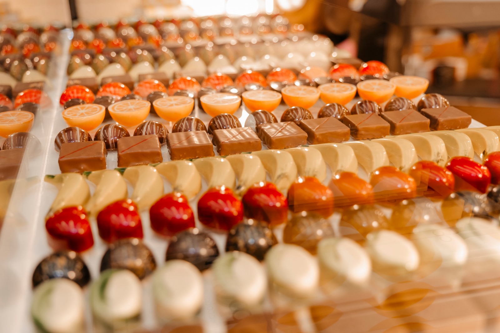 • Sortimente bean-to-bar și praline umplute cu creme naturale