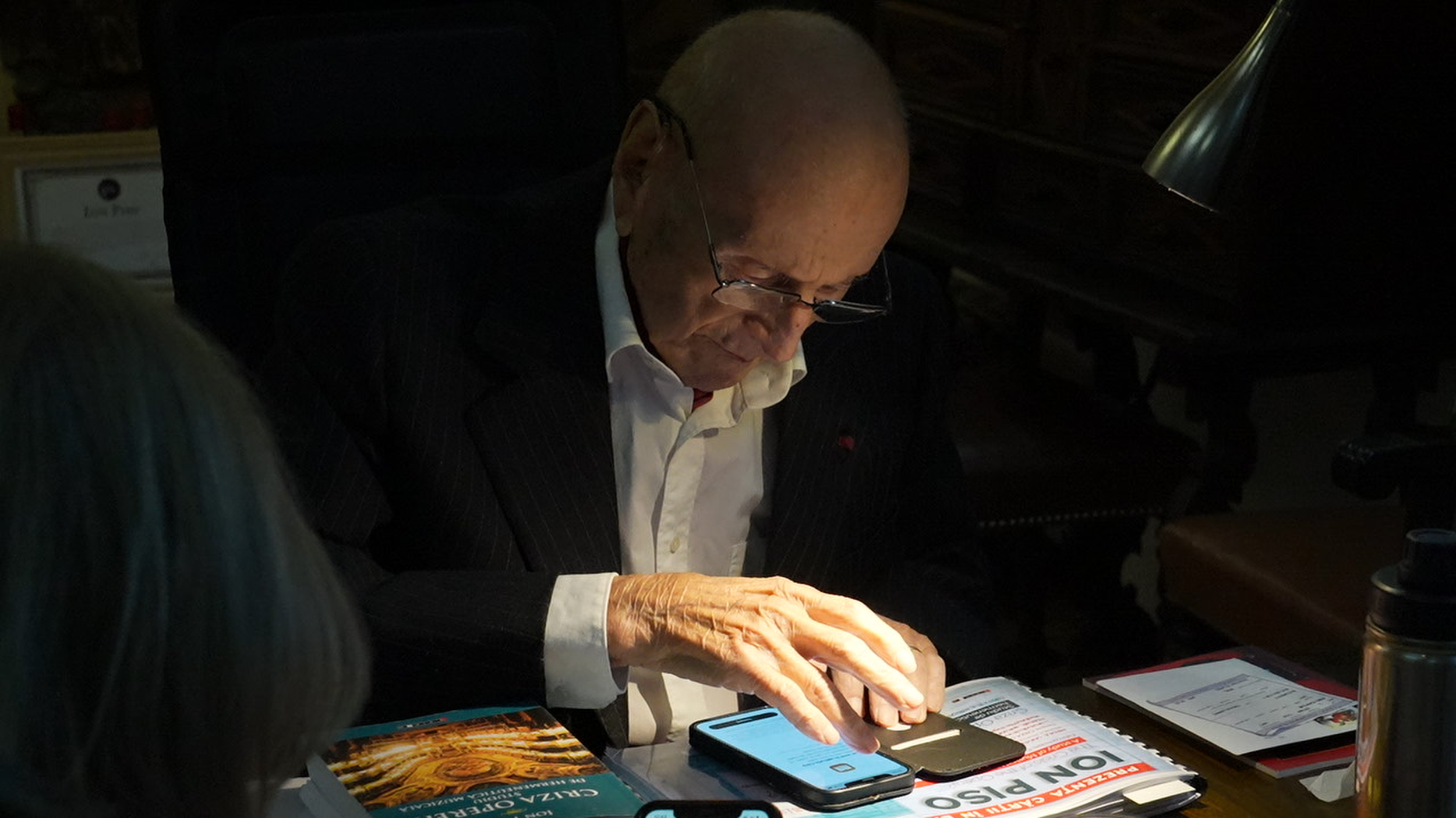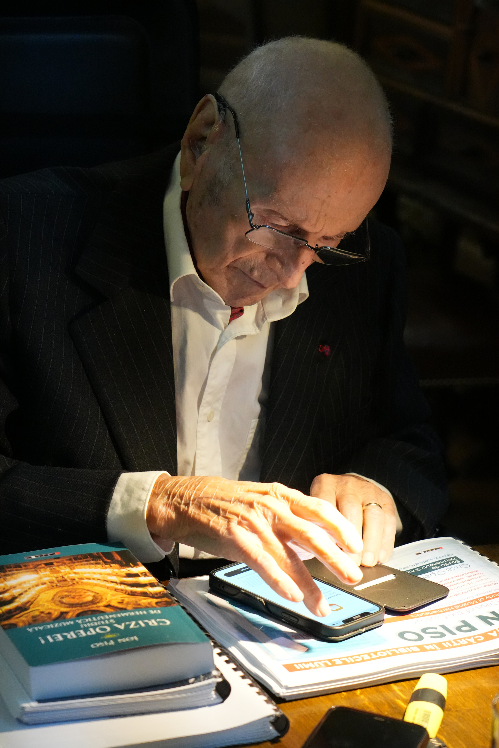 Ion Piso ne-a așteptat binevoitor, îmbrăcat elegant și mirosind discret a parfum fin. Pe masă avea două smart-phone-uri, pe care le manevra cu ușurință – dar le-a pus deoparte, ca să stăm de vorbă în tihnă. Nu s-a supărat că am instalat lumini, microfoane, stative și că am și trântit zgomotos, din greșeală, câte ceva, de vreo două ori.