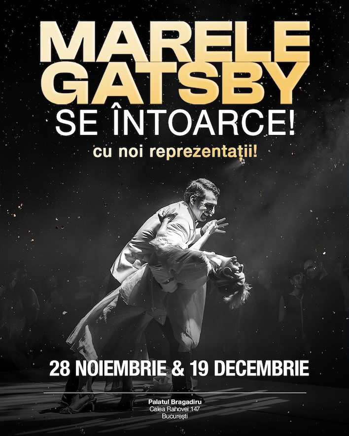 Următoarele reprezentații ale spectacolului „Marele Gatsby – Un spectacol imersiv” vor avea loc la Palatul Bragadiru din București pe 28, 29 și 30 noiembrie, precum și pe 19, 20 și 21 decembrie 2025, începând cu ora 19:30. Locurile sunt limitate, iar biletele sunt disponibile pe site-ul oficial https://marelegatsby.ro/ .