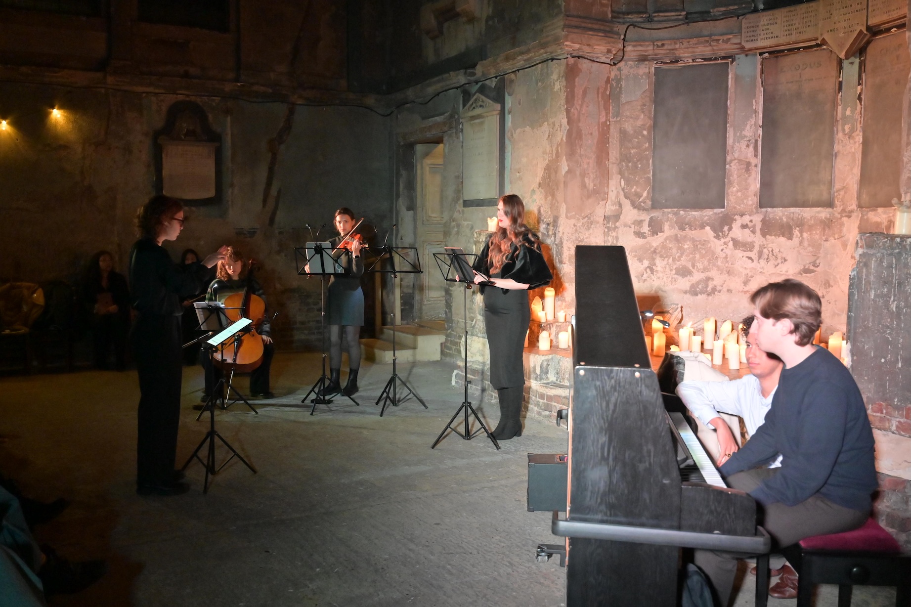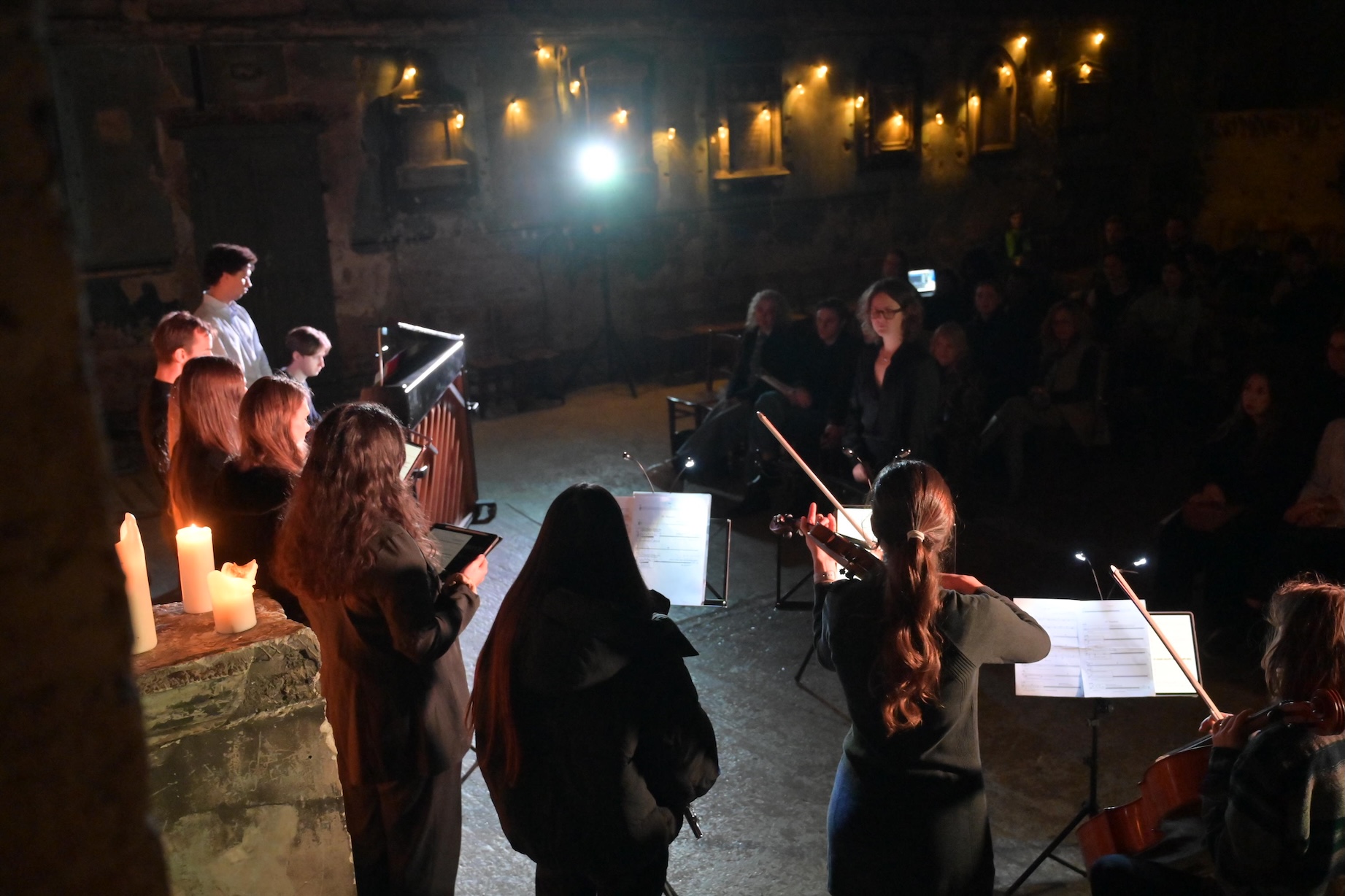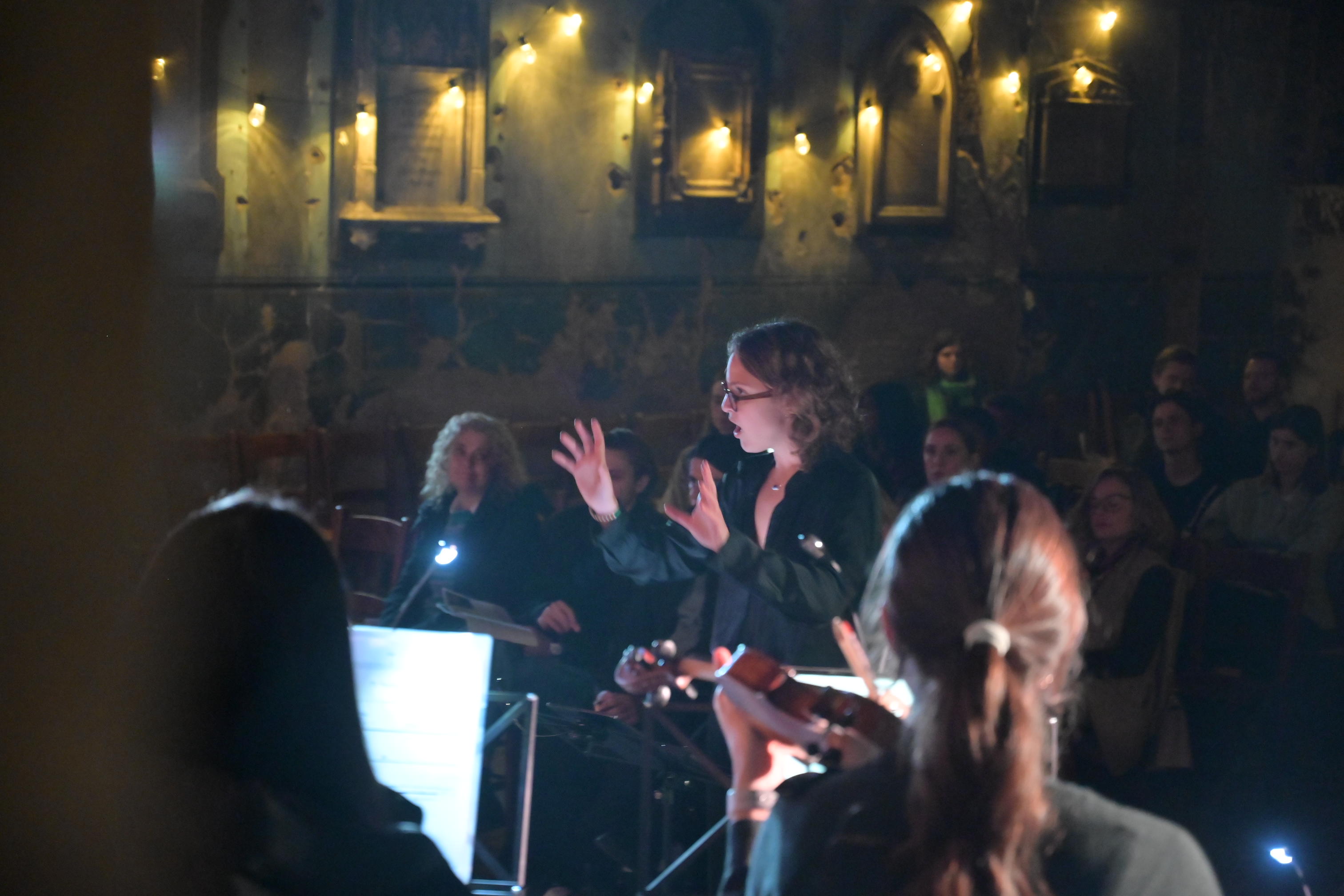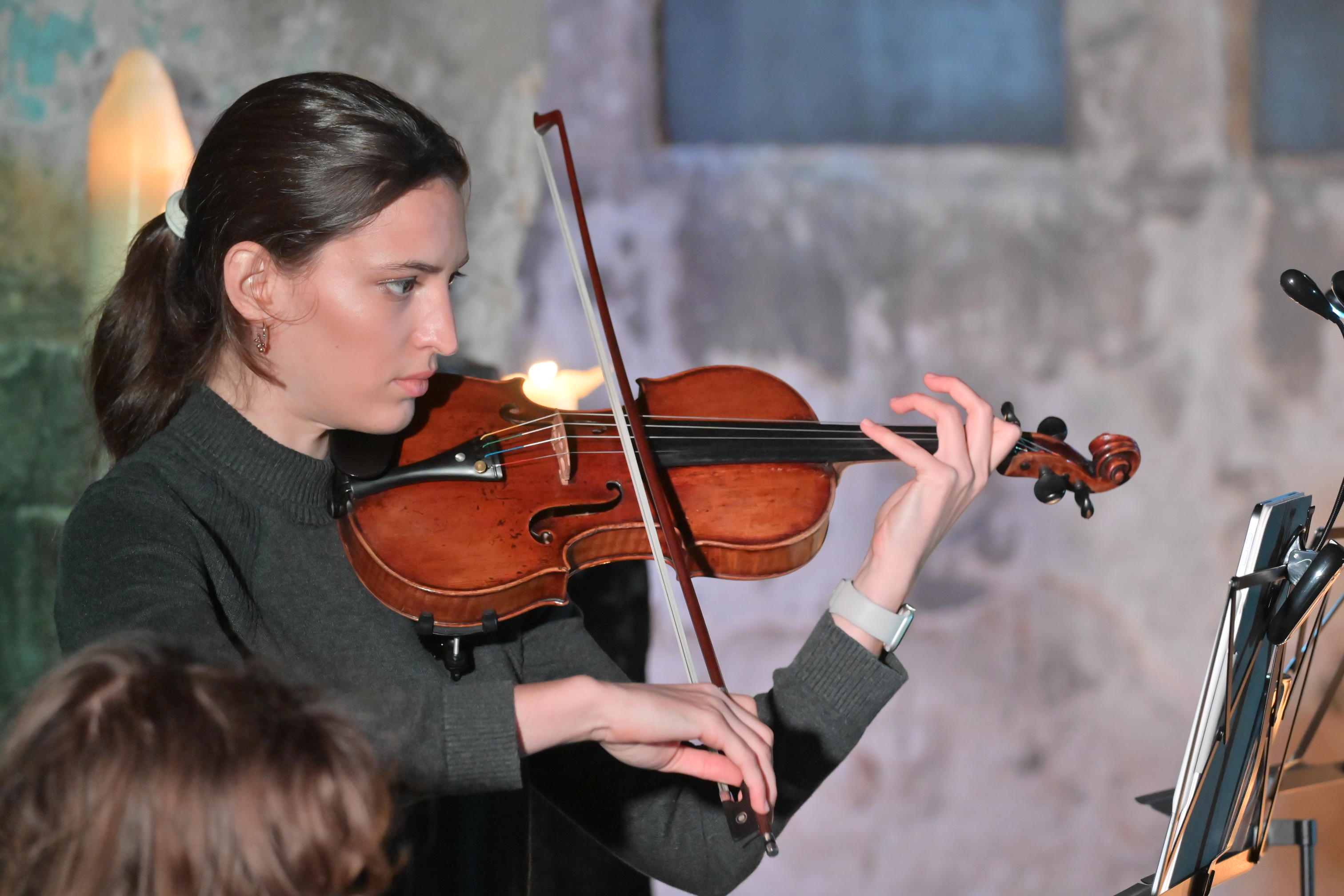 Capela însăși este un spațiu aparte care adună laolaltă istorie, moarte, iubire și viață, creând o atmosferă ce șterge granițele timpului. Între vitralii, arcade, ornamente de marmură sau piatră și plăci comemorative care și-au păstrat patina originală, tinerii muzicieni au adus câteva lumânări de ceară adevărată și harul lor luminos, alături de un program cu totul aparte, care a îmbinat compozițiile clasice semnate de Johannes Brahms, Mozart, Ralph Vaughan Williams sau Giulio Caccini cu cele ale compozitorilor contemporani nespus de tineri, David Balica, născut în 2001, și Zsolt Balint, venit pe lume în 2004. Nici instrumentele nu au fost tocmai convenționale, fiindcă, în afară de pian, violoncel, vioară, muzicienii au prezentat și folosit și un instrument abia creat, un așa-numit digital sine bell, motiv sonor și uimitor pentru care, de altfel, ansamblul, împreună cu inventatoarea clopotului digital, Anna Silver – componentă a ansamblului muzical ViDaNova – au câștigat Premiul Mercer pentru Inovație 2025 la categoria Muzică, precum și Premiul Centenar CGCA pentru Antreprenoriat, acordat unui proiect de cercetare inovator.