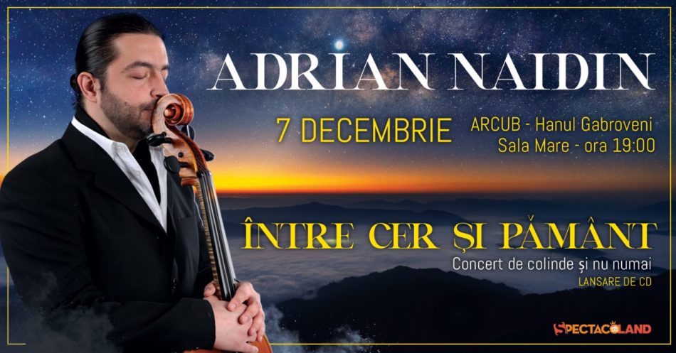 Muzicianul Adrian Naidin, unul dintre cei mai expresivi și îndrăgiți artiști ai scenei românești, invită publicul bucureștean într-o călătorie muzicală de excepție: „Între cer și pământ”. Concertul va avea loc pe 7 decembrie, la ARCUB – Hanul Gabroveni, Sala Mare, începând cu ora 19:00 și reprezintă un prilej extraordinar de a descoperi stilul inconfundabil al lui Adrian Naidin prin care aduce în prim-plan emoția autentică și bucuria colindelor românești, dar și a modului său unic de a împleti muzica clasică cu folclorul transilvănean.