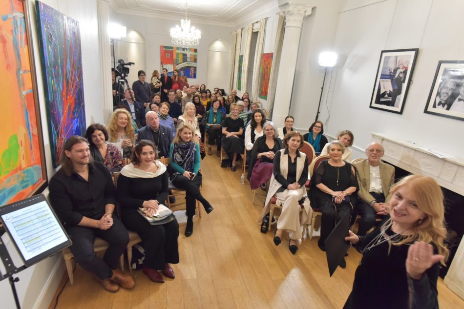 Gala Comunității „Inimile vorbesc românește” s-a desfășurat în prezența ES Doamna Ambasadoare Laura Popescu, având ca invitați pe directoarea ICR Londra Aura Woodward, directoarea adjunctă ICR Londra Raluca Cimpoiașu, violonistul Alexander Bălănescu, poeta Milena Prună, pictorița Lucia Boaghe, dr. Nistor Becia MBE, Floria Teleman, fondatoarea „Autograph România”alături de numeroși reprezentanți ai comunității românești din Marea Britanie.